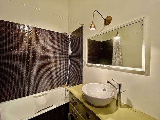 Ce duplex est équipé d'une salle de bain magnifique et claire. Cette salle d'eau bénéficie du nécessaire pour votre bien-être au quotidien : placard, baignoire, lavabo. Les toilettes sont intégrées dans la salle de bain.