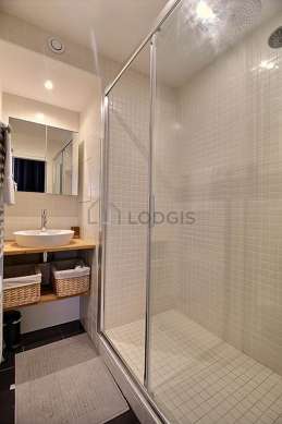 Cet appartement est équipé d'une salle de bain magnifique. Cette salle d'eau bénéficie du nécessaire pour votre bien-être au quotidien : etagère, placard, sèche cheveux, lavabo, porte serviettes. Les toilettes sont séparées de la salle de bain et situées dans une pièce indépendante.