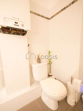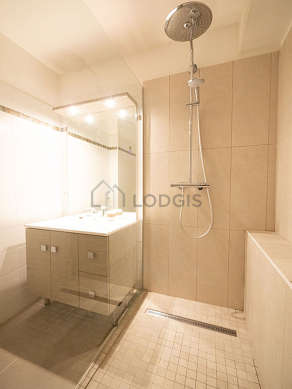Cet appartement est équipé d'une salle de bain magnifique et très claire. Cette salle d'eau bénéficie du nécessaire pour votre bien-être au quotidien : placard, douche séparée, sèche cheveux, lavabo, porte serviettes, radiateur sèche-serviettes, ventilateur. Les toilettes sont intégrées dans la salle de bain.