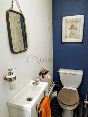 Cet appartement est équipé d'une salle de bain magnifique et très claire. Cette salle d'eau bénéficie du nécessaire pour votre bien-être au quotidien : serviettes de bain, etagère, baignoire, lavabo, miroir, porte serviettes, poubelle. Les toilettes sont séparées de la salle de bain et situées dans une pièce indépendante.
