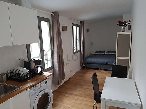 SéjourCe duplex est composé d'un beau salon avec du parquet au sol et des fenêtres double vitrage et vue sur cour. Ce salon très calme est meublé et équipé pour rendre votre séjour agréable : draps, couettes, réfrigerateur, 1 fauteuil(s), table à manger, bureau, armoire, placard, vaisselle, 1 chaise(s), etendoir, miroir, poubelle, tableau2 lit(s) de 80cm.