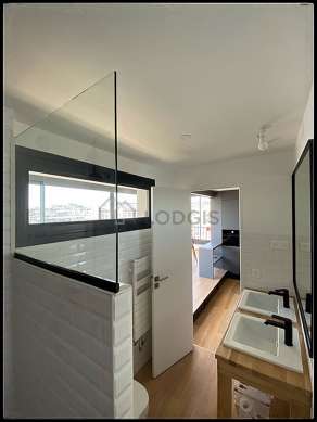 Ce duplex est équipé d'une salle de bain magnifique et claire avec des fenêtres. Cette salle d'eau bénéficie du nécessaire pour votre bien-être au quotidien : serviettes de bain, etagère, douche séparée, lavabo, miroir, radiateur sèche-serviettes, ventilateur. Les toilettes sont intégrées dans la salle de bain.