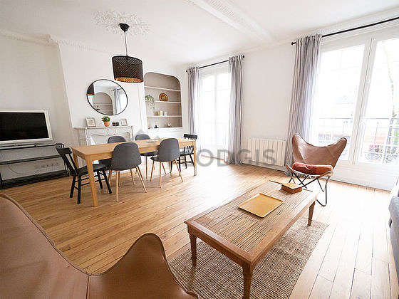 SéjourCet appartement est composé d'un beau salon avec du parquet au sol et des fenêtres. Ce salon très calme est meublé et équipé pour rendre votre séjour agréable : télé, 1 fauteuil(s), table à manger, table basse1 canapé(s) lit(s) de 150cm.
