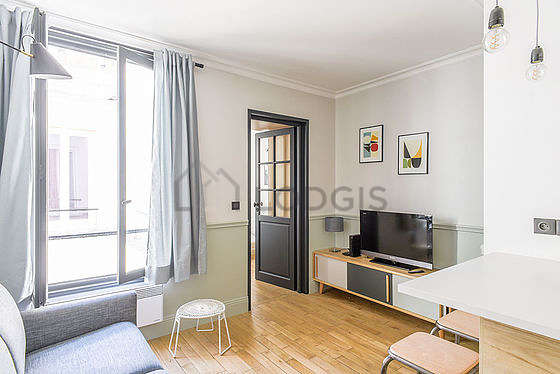 Cet appartement est composé d'un beau salon avec du parquet au sol vue sur cour. Ce salon très calme est meublé et équipé pour rendre votre séjour agréable : télé, draps, couettes, canapé, table à manger, etagère, commode, placard, vaisselle, 1 chaise(s)1 canapé(s) lit(s) de 140cm.