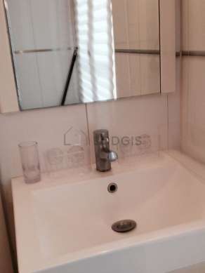 Cet appartement est équipé d'une salle de bain agréable et claire. Cette salle d'eau bénéficie du nécessaire pour votre bien-être au quotidien : serviettes de bain, etagère, placard, douche séparée, sèche cheveux, lavabo, miroir, porte serviettes, poubelle, tapis. Les toilettes sont intégrées dans la salle de bain.