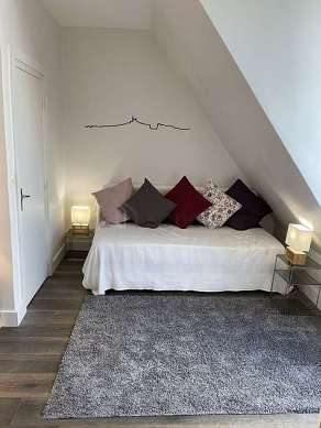 SéjourCet appartement est composé d'un superbe salon avec du parquet au sol et des fenêtres. Ce salon très calme est meublé et équipé pour rendre votre séjour agréable : couettes, canapé, table à manger, table basse, bureau, penderie, etagère, armoire, vaisselle, 1 chaise(s)1 canapé(s) lit(s) de 140cm.