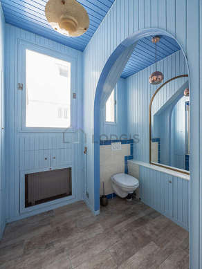 Cet appartement est équipé d'une salle de bain agréable et très claire. Cette salle d'eau bénéficie du nécessaire pour votre bien-être au quotidien : placard, baignoire, lavabo. Les toilettes sont intégrées dans la salle de bain.