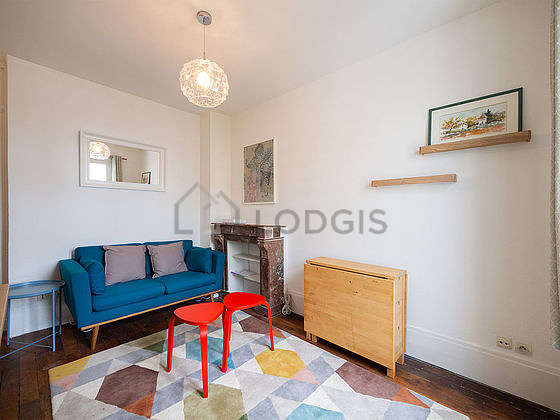 Cet appartement est composé d'un charmant salon avec du parquet au sol. Ce salon calme est meublé et équipé pour rendre votre séjour agréable : canapé, table à manger, etagère, vaisselle, cheminée, 2 chaise(s), table de chevet.