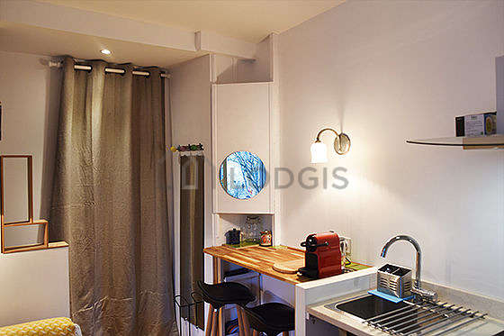 SéjourCet appartement est composé d'un séduisant salon avec du parquet au sol vue sur jardin. Ce salon très calme est meublé et équipé pour rendre votre séjour agréable : télé, draps, couettes, canapé, table à manger, penderie, etagère, commode, placard, vaisselle, 1 chaise(s)1 canapé(s) lit(s) de 140cm.