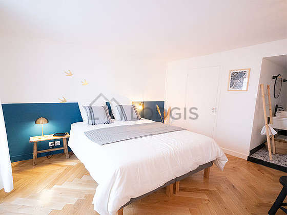 SéjourCet appartement est composé d'un beau salon avec du parquet au sol et des fenêtres et vue sur rue. Ce salon très calme est meublé et équipé pour rendre votre séjour agréable : télé, canapé, 1 fauteuil(s), table à manger, table basse, placard, vaisselle, 1 chaise(s)1 canapé(s) lit(s) de 150cm.