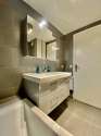 Cet appartement dispose d'une magnifique cuisine avec du parquet au sol et tout l'équipement essentiel pour votre quotidien : plaques de cuisson, réfrigerateur, micro ondes, freezer, grille pain, armoire, vaisselle.