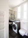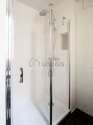 Cet appartement est équipé d'une salle de bain agréable et claire avec des fenêtres double vitrage. Cette salle d'eau bénéficie du nécessaire pour votre bien-être au quotidien : etagère, douche séparée, lavabo, radiateur sèche-serviettes. Les toilettes sont intégrées dans la salle de bain.