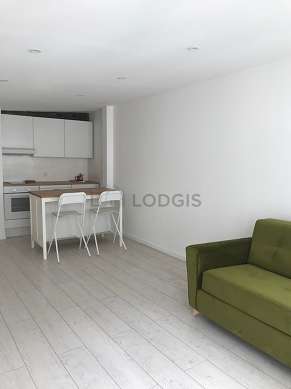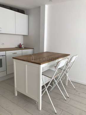 Cet appartement dispose d'une cuisine et tout l'équipement nécessaire pour votre quotidien : plaques de cuisson, réfrigerateur, four, freezer, etagère, placard, vaisselle, 1 chaise(s), bar.