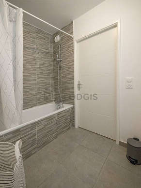 Cet appartement est équipé d'une salle de bain magnifique et très claire. Cette salle d'eau bénéficie du nécessaire pour votre bien-être au quotidien : placard, baignoire, lavabo, radiateur sèche-serviettes. Les toilettes sont séparées de la salle de bain et situées dans une pièce indépendante.