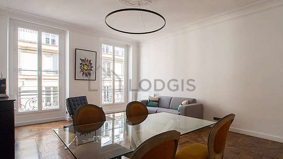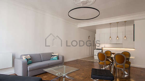 SéjourCet appartement est composé d'un beau salon avec du parquet au sol et des fenêtres. Ce salon calme est meublé et équipé pour rendre votre séjour agréable : canapé, 1 fauteuil(s), table à manger, table basse, etagère, cheminée, 1 chaise(s)1 canapé(s) lit(s) de 140cm.