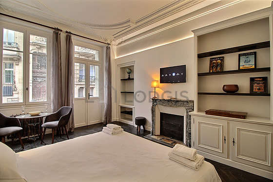 SéjourCet appartement est composé d'un magnifique salon avec du parquet au sol et des fenêtres. Ce salon très calme est meublé et équipé pour rendre votre séjour agréable : couettes, table à manger, etagère, armoire, cheminée, 1 chaise(s), meuble tv, tableau1 lit(s) de 140cm.