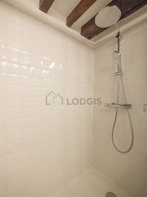 Cet appartement est équipé d'une salle de bain magnifique et claire. Cette salle d'eau bénéficie du nécessaire pour votre bien-être au quotidien : armoire, placard, douche séparée, sèche cheveux, lavabo, radiateur sèche-serviettes. Les toilettes sont intégrées dans la salle de bain.