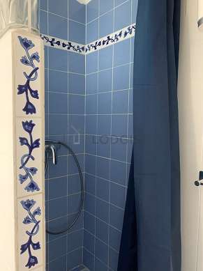 Cet appartement est équipé d'une salle de bain magnifique et claire. Cette salle d'eau bénéficie du nécessaire pour votre bien-être au quotidien : etagère, armoire, douche séparée, lavabo, porte manteaux, poubelle, radiateur sèche-serviettes. Les toilettes sont intégrées dans la salle de bain.