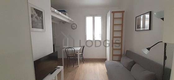 SéjourCet appartement est composé d'un plaisant salon avec du parquet au sol vue sur cour. Ce salon très calme est meublé et équipé pour rendre votre séjour agréable : télé, couettes, réfrigerateur, bouilloire électrique, canapé, table à manger, penderie, etagère, buffet, placard, vaisselle, 1 chaise(s), table de chevet, etendoir, lampadaire sur pied, meuble tv, miroir, porte manteaux, poubelle, tableau1 matelas de 140cm, 1 canapé(s) lit(s) de 140cm.