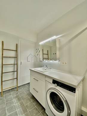 Cet appartement est équipé d'une salle de bain magnifique et très claire. Cette salle d'eau bénéficie du nécessaire pour votre bien-être au quotidien : serviettes de bain, placard, baignoire, tabouret, sèche cheveux, miroir, poubelle, radiateur sèche-serviettes. Les toilettes sont séparées de la salle de bain et situées dans une pièce indépendante.