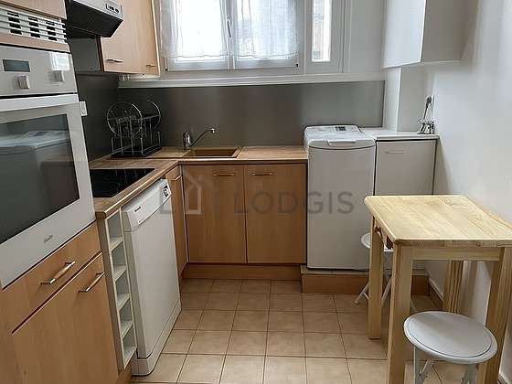 Cet appartement dispose d'une belle cuisine avec du carrelage au sol et tout l'équipement nécessaire pour votre quotidien : plaques de cuisson, réfrigerateur, congélateur, four, micro onde combiné, grille pain, bouilloire électrique, cafetière, table à manger, etagère, placard, vaisselle, robot ménager, 1 chaise(s), tabouret, porte serviettes, poubelle.
