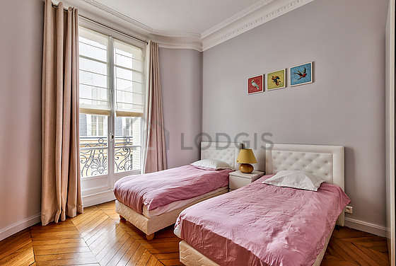 Avec du parquet au sol vue sur rue, cette chambre splendide offre l'équipement nécessaire pour vous reposer pendant votre séjour : draps, couettes, armoire2 lit(s) de 90cm.