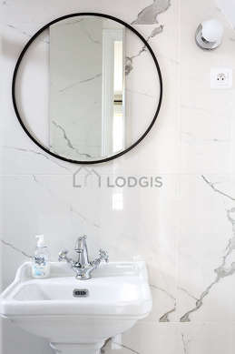 Cet appartement est équipé d'une salle de bain magnifique et très claire. Cette salle d'eau bénéficie du nécessaire pour votre bien-être au quotidien : serviettes de bain, douche séparée, sèche cheveux, lavabo, radiateur sèche-serviettes. Les toilettes sont séparées de la salle de bain et situées dans une pièce indépendante.