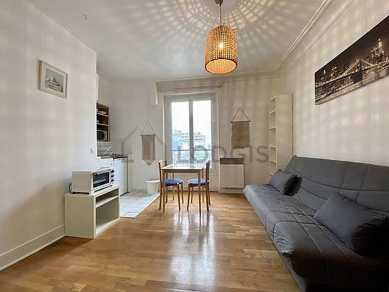 SéjourCet appartement est composé d'un salon avec du parquet au sol et des fenêtres. Ce salon est meublé et équipé pour rendre votre séjour agréable : canapé, table à manger, penderie, bibliothèque, armoire, 2 chaise(s), console, lustre, tableau1 canapé(s) lit(s) de 0cm.