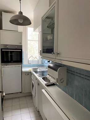 Cet appartement dispose d'une cuisine et tout l'équipement indispensable pour votre quotidien : plaques de cuisson, réfrigerateur, four, bouilloire électrique.