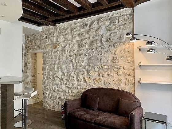 SéjourCet appartement est composé d'un beau salon avec du parquet au sol et des fenêtres. Ce salon très calme est meublé et équipé pour rendre votre séjour agréable : télé, draps, couettes, canapé, table à manger, etagère, placard, pierres apparentes, poutre, meuble tv1 lit(s) de 140cm.