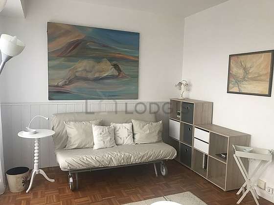SéjourCet appartement est composé d'un beau salon avec du parquet au sol et des fenêtres avec balcon et vue sur rue. Ce salon très calme est meublé et équipé pour rendre votre séjour agréable : télé, 1 fauteuil(s), table à manger, penderie, etagère, placard, 2 chaise(s), tabouret1 canapé(s) lit(s) de 160cm.