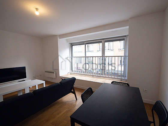 Cet appartement est composé d'un superbe salon avec du parquet au sol et des fenêtres. Ce salon très calme est meublé et équipé pour rendre votre séjour agréable : télé, canapé, table à manger, table basse, 1 chaise(s).