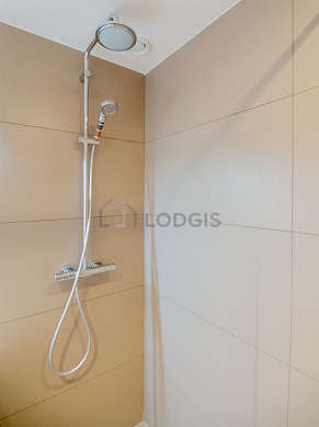 Cet appartement est équipé d'une salle de bain magnifique. Cette salle d'eau bénéficie du nécessaire pour votre bien-être au quotidien : etagère, placard, douche séparée, sèche cheveux, lavabo, miroir, radiateur sèche-serviettes. Les toilettes sont séparées de la salle de bain et situées dans une pièce indépendante.