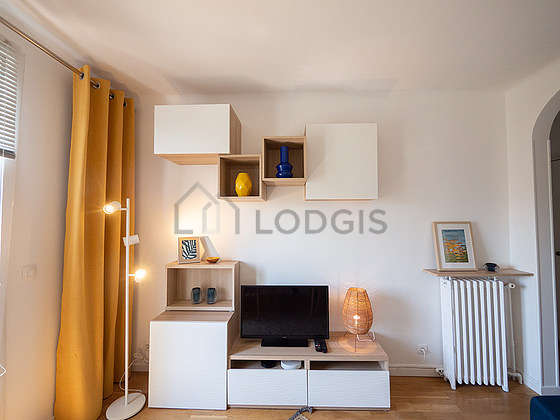 SéjourCet appartement est composé d'un beau salon avec du parquet au sol vue sur rue. Ce salon très calme est meublé et équipé pour rendre votre séjour agréable : télé, table à manger, table basse, etagère, 4 chaise(s), lampadaire sur pied, meuble tv, miroir1 canapé(s) lit(s) de 140cm.