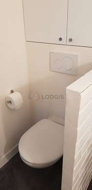 Cet appartement est équipé d'une salle de bain magnifique et très claire. Cette salle d'eau bénéficie du nécessaire pour votre bien-être au quotidien : serviettes de bain, etagère, douche séparée, lavabo, miroir, porte serviettes, radiateur sèche-serviettes, ventilateur. Les toilettes sont intégrées dans la salle de bain.