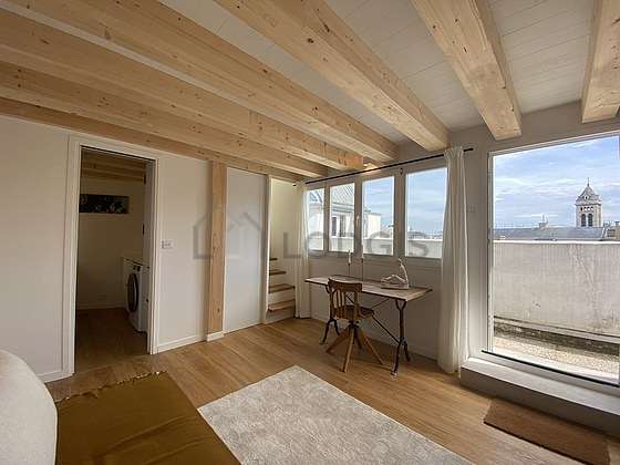 SéjourCet appartement est composé d'un magnifique salon avec du parquet au sol et des fenêtres. Ce salon très calme est meublé et équipé pour rendre votre séjour agréable : canapé, table à manger, 2 chaise(s).