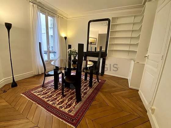 Afin de partager vos repas en toute convivialité pendant votre séjour à Paris, cet appartement dispose d'une agréable salle à manger qui peut accueillir jusqu'à 4 convives grâce à table à manger, etagère, cheminée, 4 chaise(s).