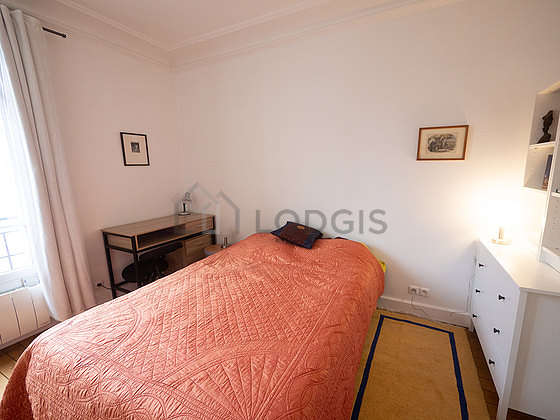Avec du parquet au sol et des fenêtres double vitrage cette chambre splendide offre l'équipement nécessaire pour vous reposer pendant votre séjour : draps, couettes, bureau, penderie, bibliothèque, etagère, armoire, commode, 1 chaise(s), tableau, tapis1 lit(s) de 140cm.