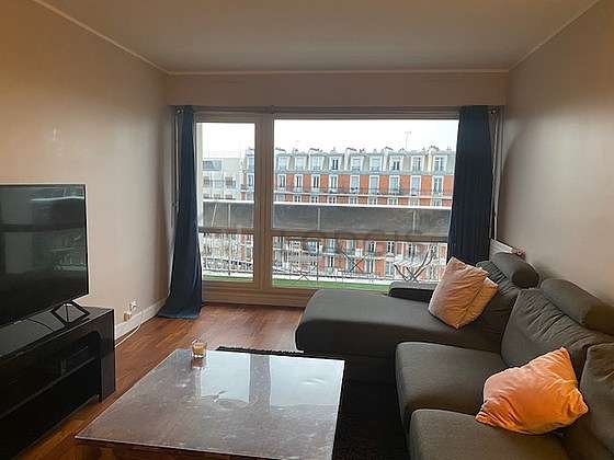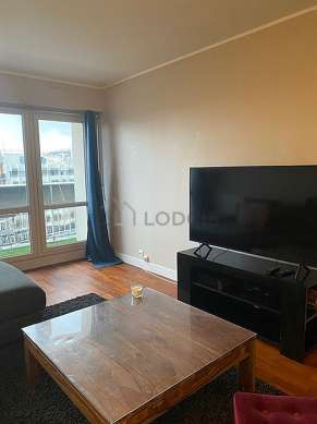SéjourCet appartement est composé d'un magnifique salon avec du parquet au sol et des fenêtres double vitrage avec balcon et vue sur rue. Ce salon très calme est meublé et équipé pour rendre votre séjour agréable : télé, canapé, table basse, vaisselle, 1 chaise(s), tabouret, meuble tv, tapis.