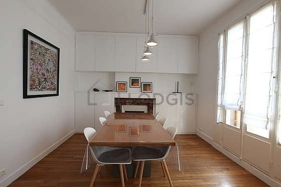Afin de partager vos repas en toute convivialité pendant votre séjour à Paris, cet appartement dispose d'une magnifique salle à manger qui peut accueillir jusqu'à 6 convives grâce à table à manger, armoire, 1 chaise(s).