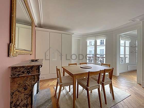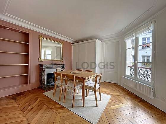 Afin de partager vos repas en toute convivialité pendant votre séjour parisien, cet appartement dispose d'une magnifique salle à manger qui peut accueillir jusqu'à 5 convives grâce à table à manger, placard, cheminée, 1 chaise(s).