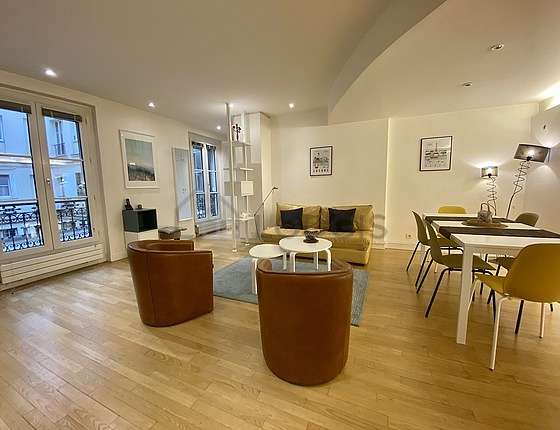 Cet appartement est composé d'un superbe salon avec du parquet au sol vue sur cour. Ce salon très calme est meublé et équipé pour rendre votre séjour agréable : télé, couettes, canapé, 1 fauteuil(s), table à manger, table basse, etagère, placard, 1 chaise(s), lampadaire sur pied, lampe, meuble tv, miroir, spot encastré, tableau, tapis1 canapé(s) lit(s) de 0cm.