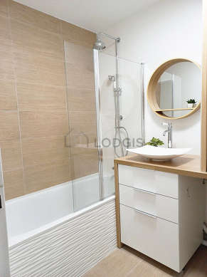Cet appartement est équipé d'une salle de bain. Cette salle d'eau bénéficie du nécessaire pour votre bien-être au quotidien : placard, baignoire, lavabo, miroir, radiateur sèche-serviettes, tapis. Les toilettes sont séparées de la salle de bain et situées dans une pièce indépendante.