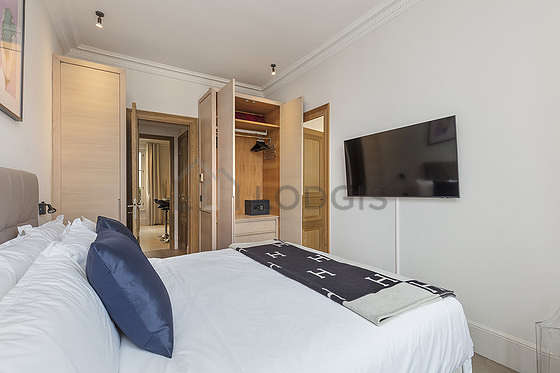 Pour plus de confort, cet appartement est pourvu d'un magnifique dressing, véritable espace de rangement équipé de placard, rideaux, spot, où vous pourrez entreposer vos affaires durant votre séjour.