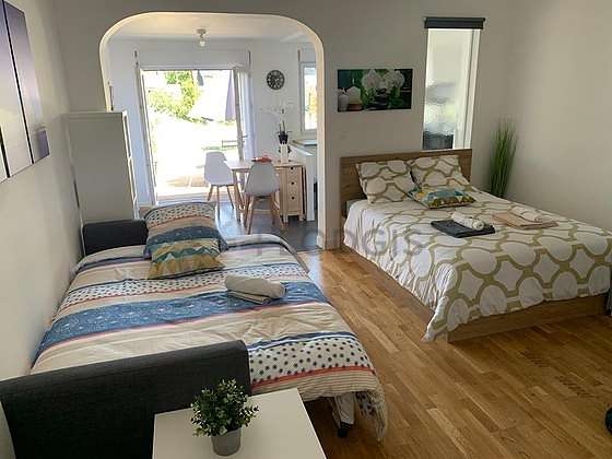 Cet appartement est composé d'un superbe salon avec du parquet au sol et des fenêtres. Ce salon très calme est meublé et équipé pour rendre votre séjour agréable : télé, draps, couettes, réfrigerateur, canapé, table à manger, placard, vaisselle, 1 chaise(s), miroir, porte manteaux, poubelle, tableau1 canapé(s) lit(s) de 130cm, 1 lit(s) de 130cm.