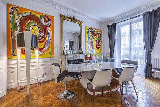 Afin de partager vos repas en toute convivialité pendant votre séjour à Paris, cet appartement dispose d'une salle à manger.