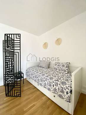 Cet appartement est composé d'un beau salon avec du parquet au sol et des fenêtres double vitrage. Ce salon très calme est meublé et équipé pour rendre votre séjour agréable : télé, canapé, table basse, bureau1 lit(s) gigogne de 130cm.