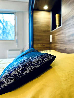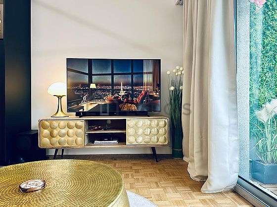 SéjourCet appartement est composé d'un salon des fenêtres avec balcon et vue sur jardin. Ce salon est meublé et équipé pour rendre votre séjour agréable : home cinéma, télé, draps, couettes, canapé, table à manger, table basse, etagère, commode, placard, 1 chaise(s), table de chevet.