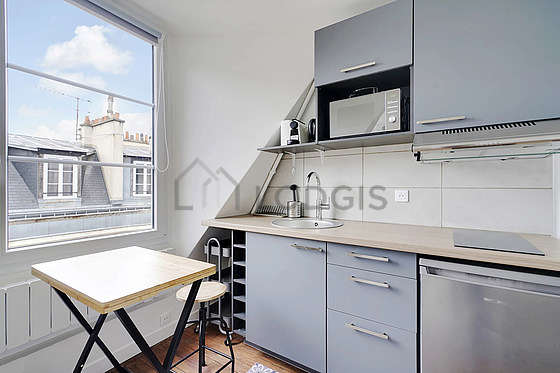 Cet appartement dispose d'une cuisine et tout l'équipement essentiel pour votre quotidien : plaques de cuisson, réfrigerateur, congélateur, four, micro ondes, hotte, grille pain, bouilloire électrique, cafetière, table à manger, placard.