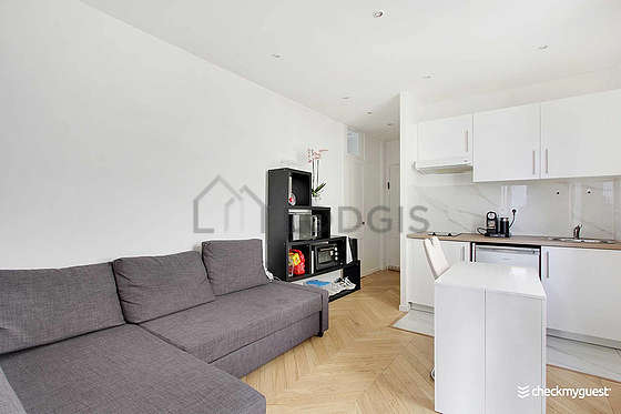 SéjourCet appartement est composé d'un salon des fenêtres. Ce salon est meublé et équipé pour rendre votre séjour agréable : télé, canapé.